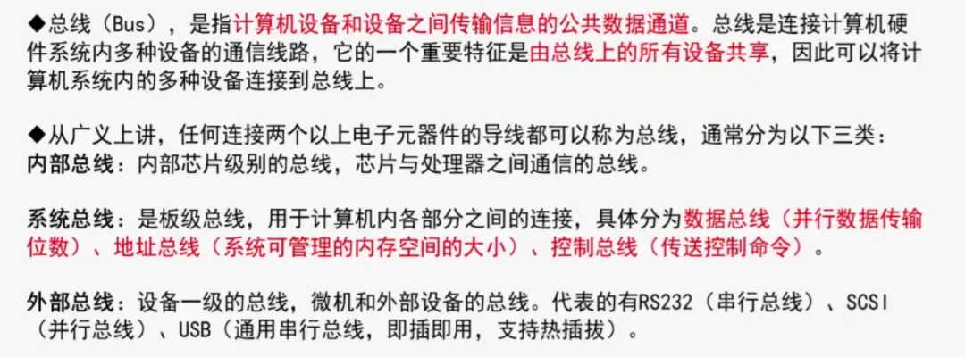 根据总线所处的位置不同,总线通常被分为三种类型,分别是: