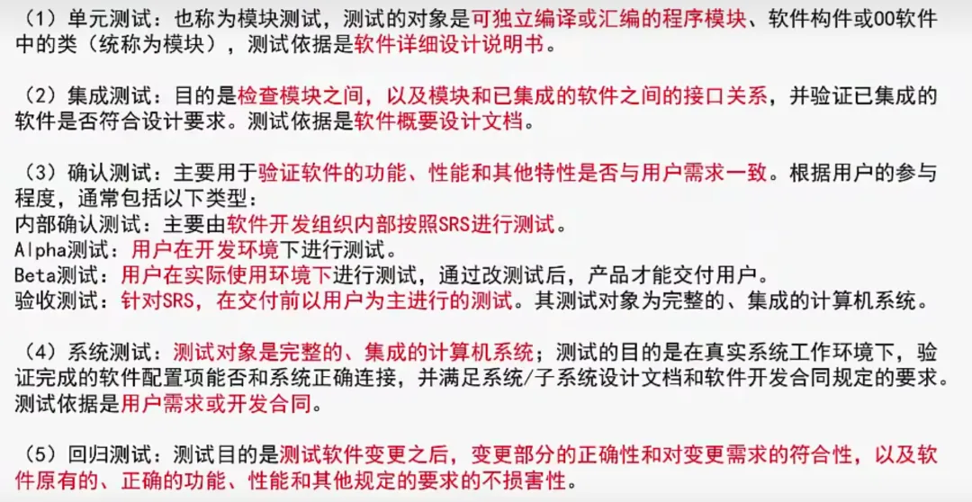 恢复测试、安全性测试、强度测试、性能测试、可靠性测试和安装测试