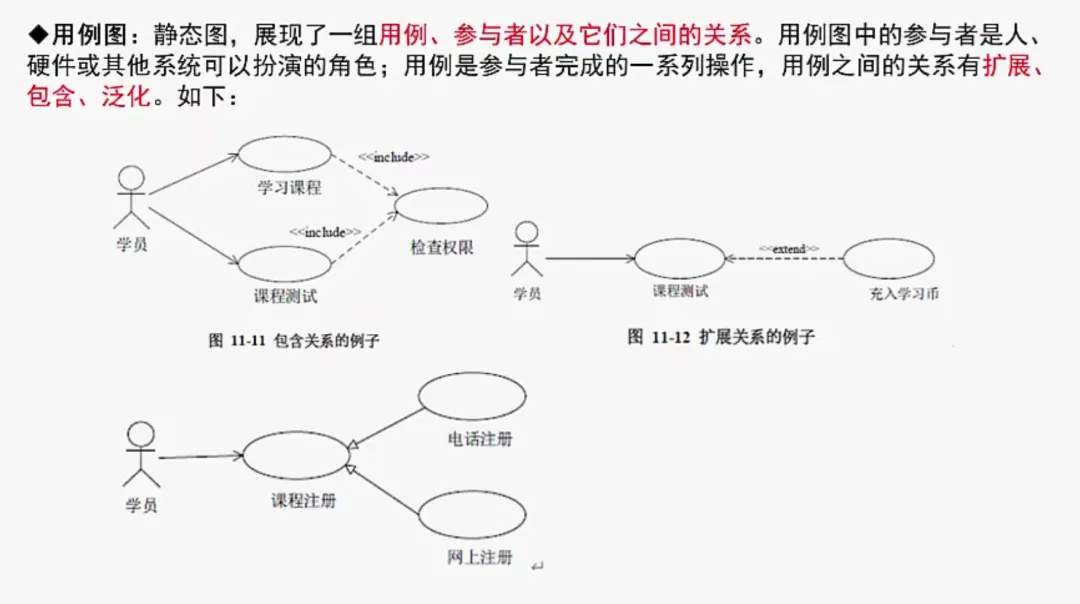 - • 扩展关系:如果一个用例明显地混合来两种或两种以上的不同场景,即根据情况可能发生多种分支,则可以将这个用例分为一个基本用例和一个或多个扩展用例,这样时描述可能更加清晰。