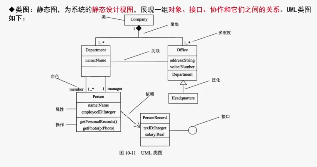 类图(class diagram):类图描述一组类、接口、协作和它们之间的关系。在面向对象系统的建模中,最常见的图就是类图。类图给出了系统的静态设计视图,活动类的类图给出了系统的静态进程视图。