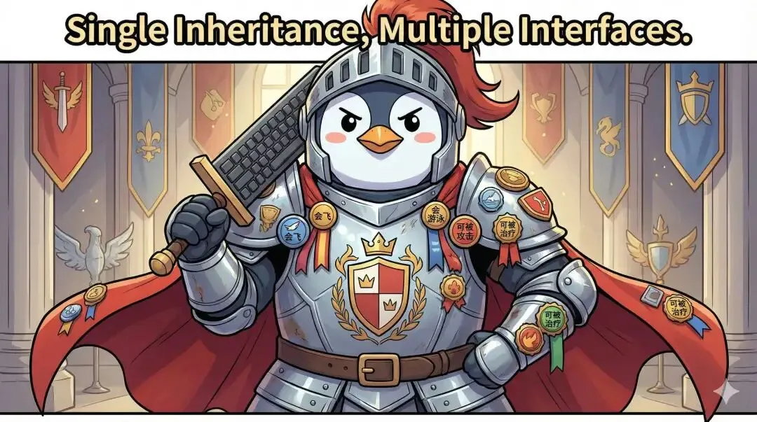 publicclassSuperPipi : Penguin, IFlyable, IAttackable, IDamageable{// 所有能力,自己实现}