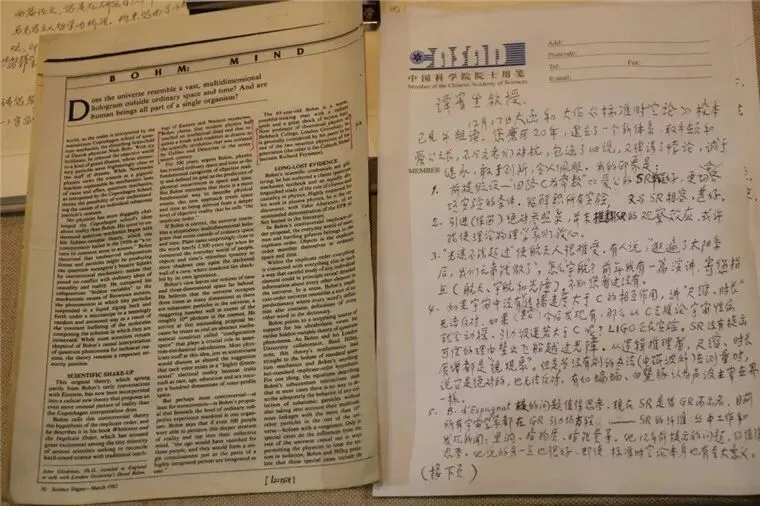 钱学森与朱毅麟讨论学术的手稿 来源:钱学森手稿