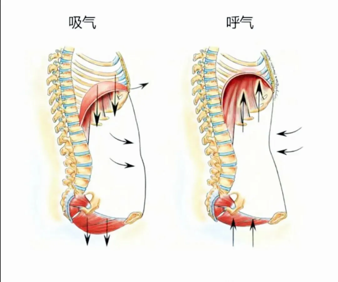 理想状态:身体是一个不断螺旋、反旋的动态系统。当胸廓在良好的腹壁控制下打开时,肋骨应能均匀地向前外方扩张。