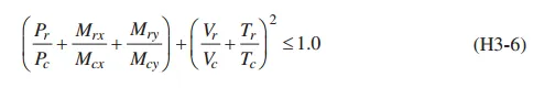 H3.2受组合作用的HSS,因为组合作用很复杂,所以AISC给出了简化计算,当所需扭转强度Tr(the required torsional strength)小于20%的可用扭转强度Tc(the available torsional strength),可以忽略扭转效应,按H1计算。