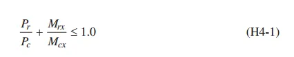 H1.1同时受到压弯的单向或双向截面对称的构件,是指受到压弯应力的双向对称构件和一个方向的几何轴被限制的单对称截面,这种情况下的构件不需要考虑复杂的双向弯曲相互作用,常见的单向截面对称如槽钢、T型钢等,常见的双向截面对称构件如H型钢。H1-1a和H1-1b给出了压弯构件的相互作用强度限制要求,以轴向力的作用力程度区分,要求当轴向力较大时,需要更严格的控制(H1-1b)。