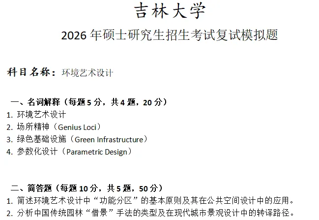 吉林大学环境艺术设计考研复试真题模拟含答案