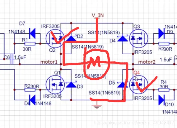 注意不能同侧mos管导通,对角导通电机就开始转动