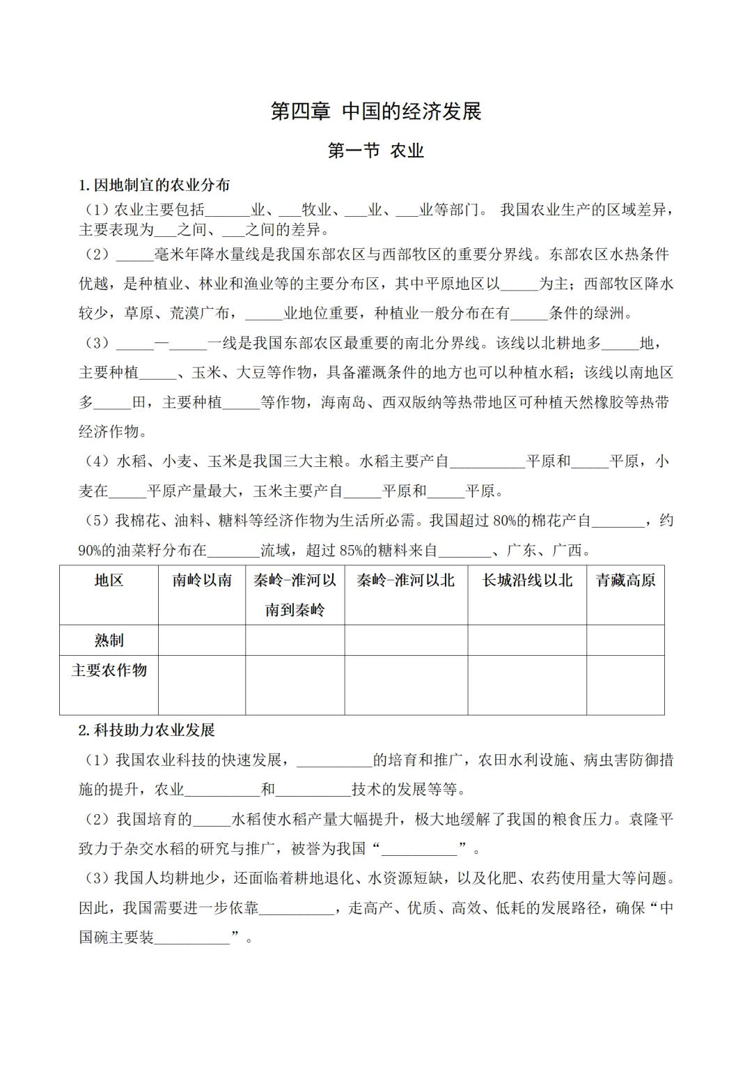 >【复习资料】中国的经济发展、建设美丽中国学习清单