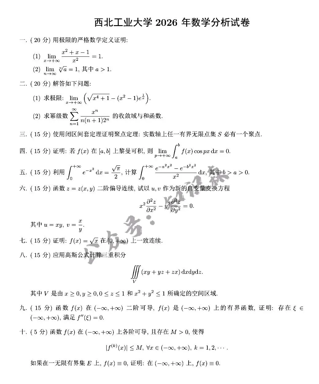 >西北工业大学2026数学分析考研真题