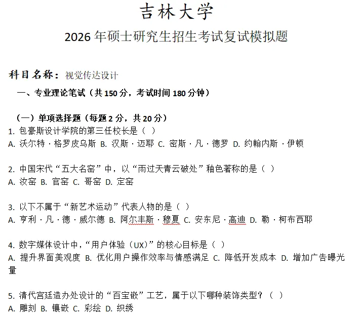 吉林大学视觉传达设计考研复试真题模拟含答案