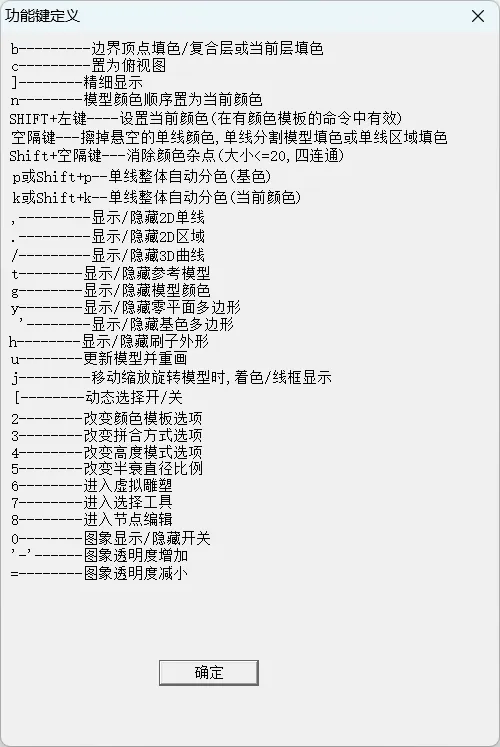 G 模型颜色显隐 M 整体擦除颜色
