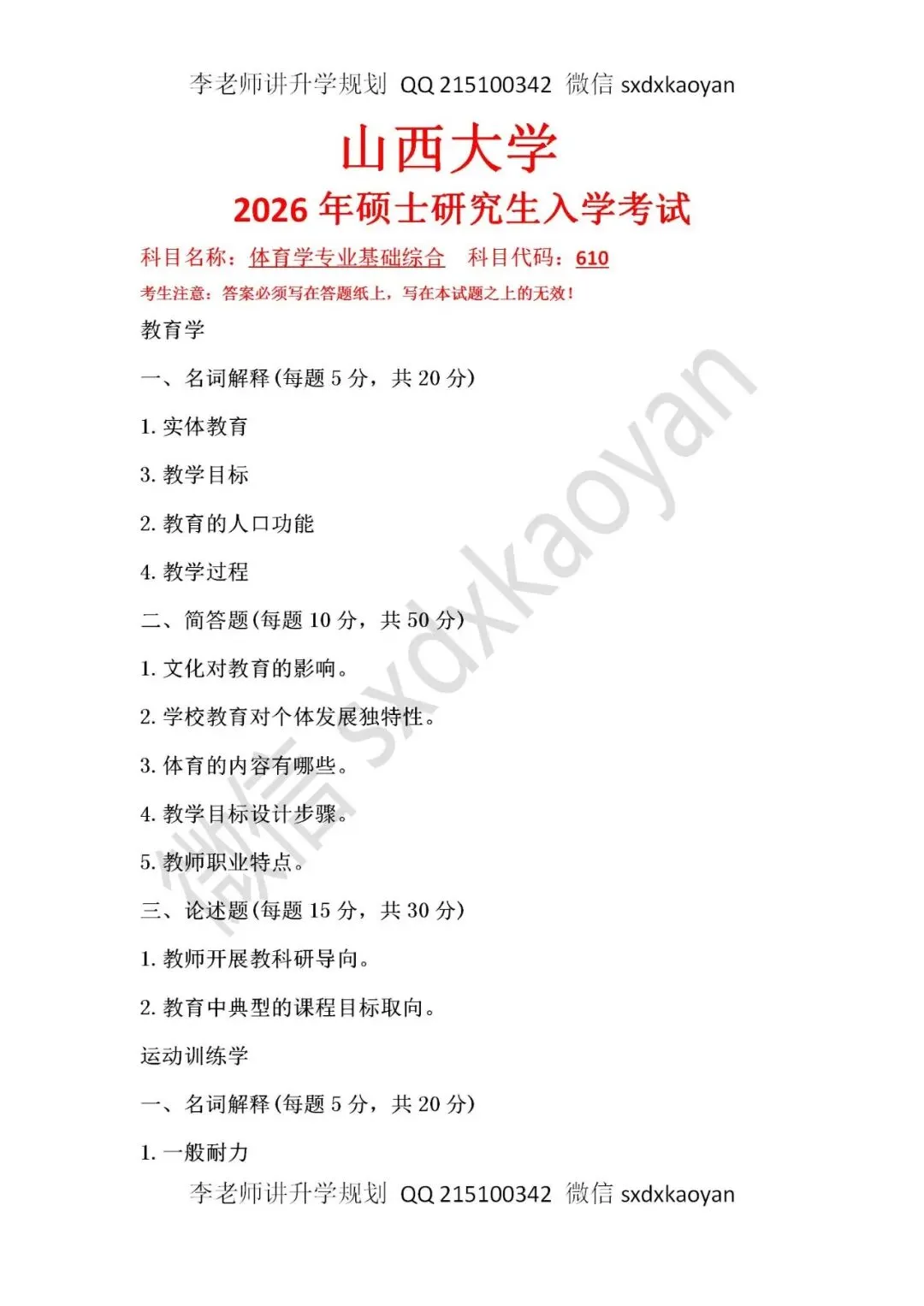 2024考研山西大学专业课第三期一对一标准班、一对一通关班招生简章