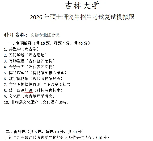 吉林大学文物专业综合课考研复试真题模拟含答案