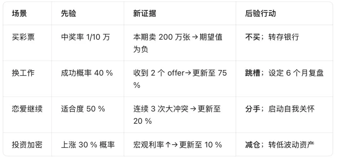 高频决策(投资、情绪)应循环更新→形成“贝叶斯习惯”。