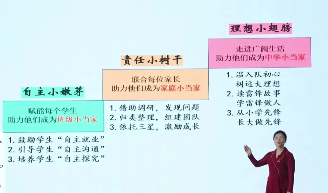 这是整个班级建设的顶层设计,以 “小当家” 为核心,构建了从个体自主到社会责任的阶梯式成长路径: