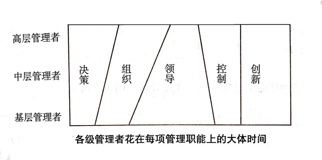 教材观点:高层管理者花在决策、组织和控制职能上的时间要比基层管理者多,而领导职能占据了基层管理者很多时间,各级管理者用于创新工作的时间大体相同。