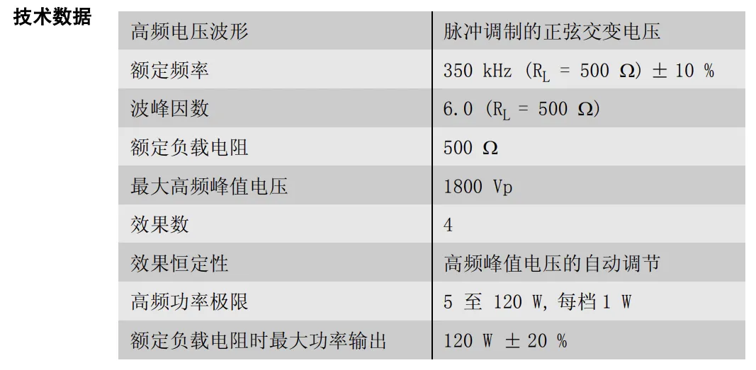 1.所有 Effect 档在起始阶段功率都达不到设定的最大值:在手术开始时,刀头接触的是湿润组织(血液、液体、黏膜层),这时组织电阻(约100–300Ω)很低。若系统在低电阻时立刻释放满额电压,则功率会瞬间暴涨,可能导致:组织被爆裂、飞溅或产生大面积碳化,所以,ERBE 的 PPS(Power Peak System) 会自动判断:“此时组织阻抗太低,不宜释放全部能量。”像汽车起步时不会一下子踩到底,而是逐步加油。