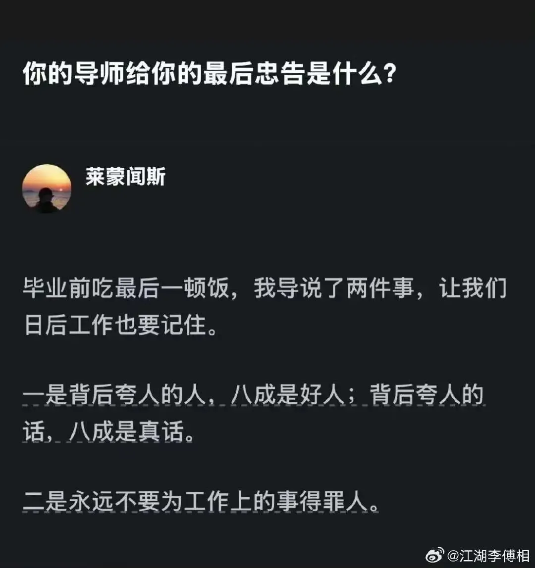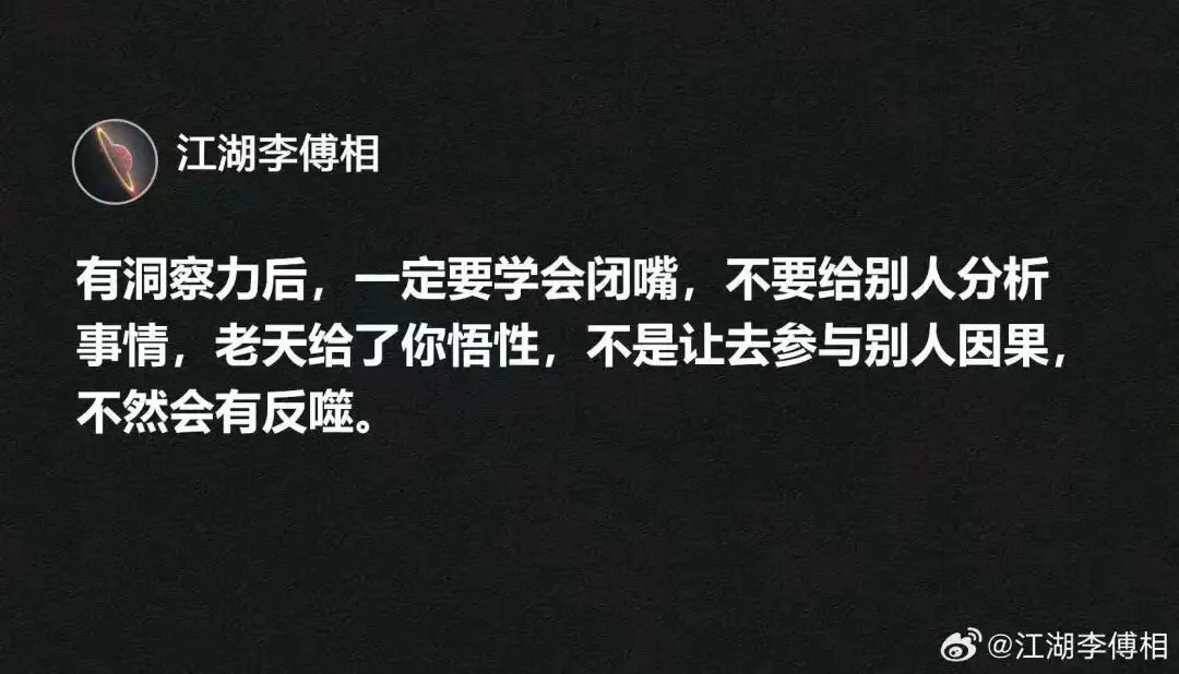 有个很好玩的段子,我记得说的是微信签名,写天道酬勤的一般一点也不勤。写好好爱自己的,一般都不太爱自己。写厚德载物的一般都没啥德行,写包罗万象的脾气就不好
