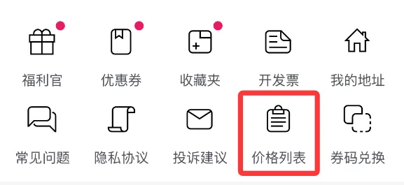 点击“个人中心”,查看“价格列表”。
