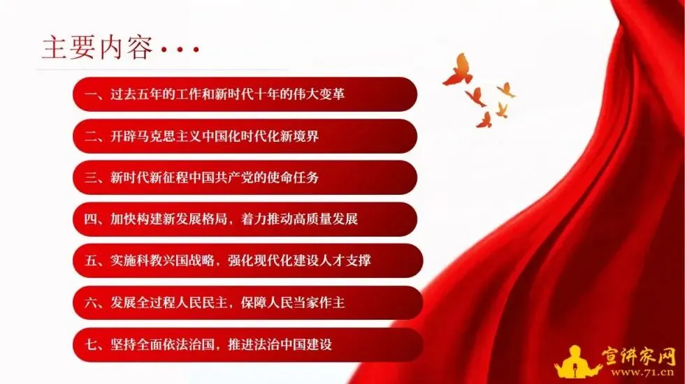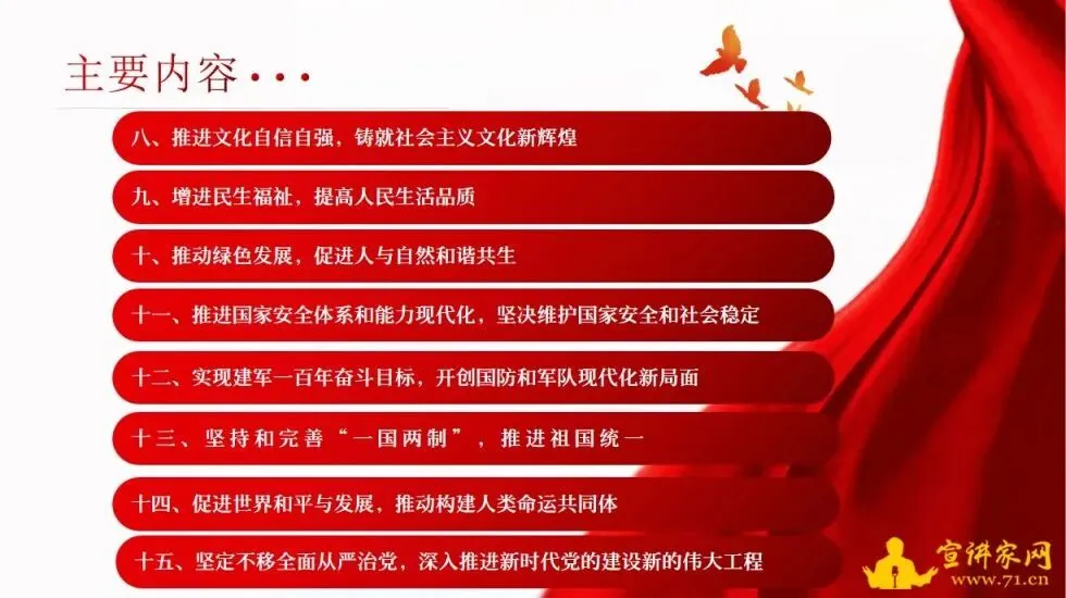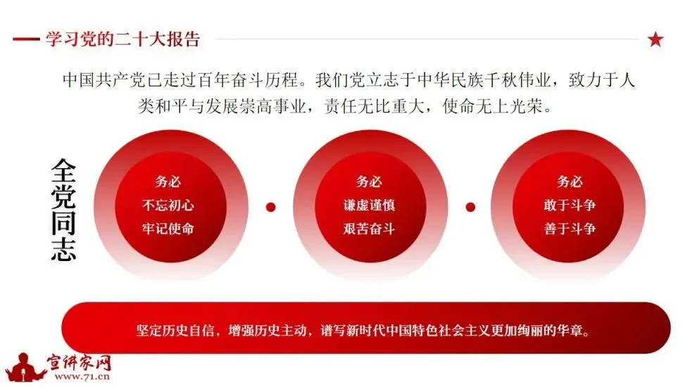 2022年10月16日,习近平同志在中国共产党第二十次全国代表大会上作题为《高举中国特色社会主义伟大旗帜 为全面建设社会主义现代化国家而团结奋斗》的报告。报告共分15个部分,宣讲家网推出本期课件,和广大网友一起学习报告内容。