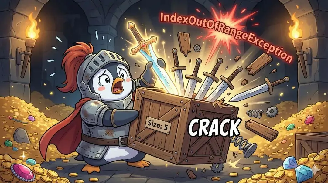 他用数组 Item[] 做了一个背包,容量写死为 10 格。 结果今天欧气爆发,捡到了第 11 把神器—— 💥 程序当场去世IndexOutOfRangeException