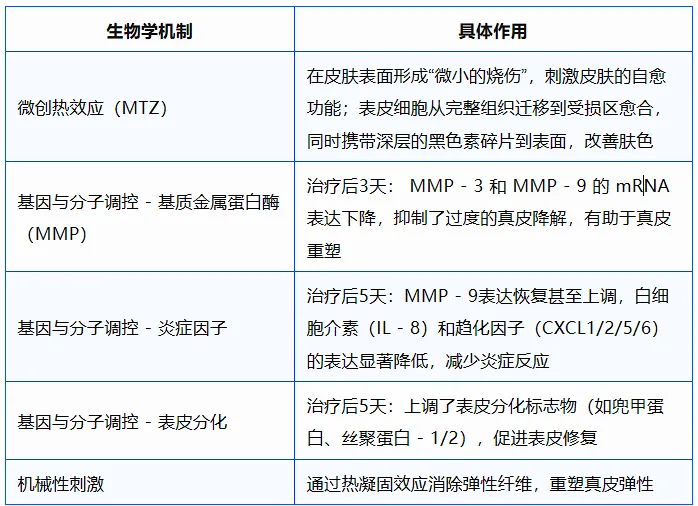 3.4.1非剥脱点阵激光是一种安全性更高、侵入性更低的激光技术。它通过在皮肤上形成微米级的点状热损伤区(MTZ),在不破坏皮肤整体屏障的前提下,刺激胶原蛋白重塑。- 组织屏障完整:与剥脱激光不同,非剥脱激光不会完全破坏角质层。