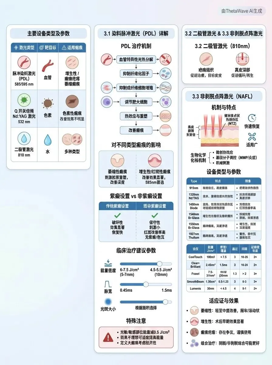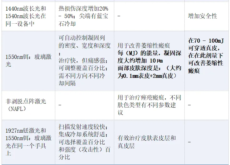 激光类型 | 波长 | 靶目标 | 适用 瘢痕类型 | 关键参数 |