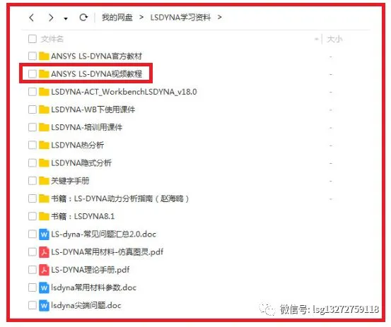 2)《LSDYNA类学习资料》:包括了基础培训、高级培训及一些专题培训资料,当然还有一些视频,共40g。