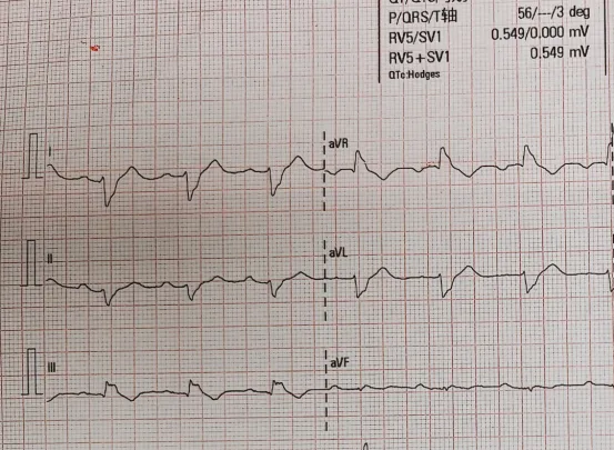 同理,Ⅰ导联T波的表现也是低平。当左右心室激动同步,QRS波表现为振幅偏低,这就导致我们粗看之下Ⅰ导联是一条直线。细细看来则不然。由此判断,没有左右手反接。