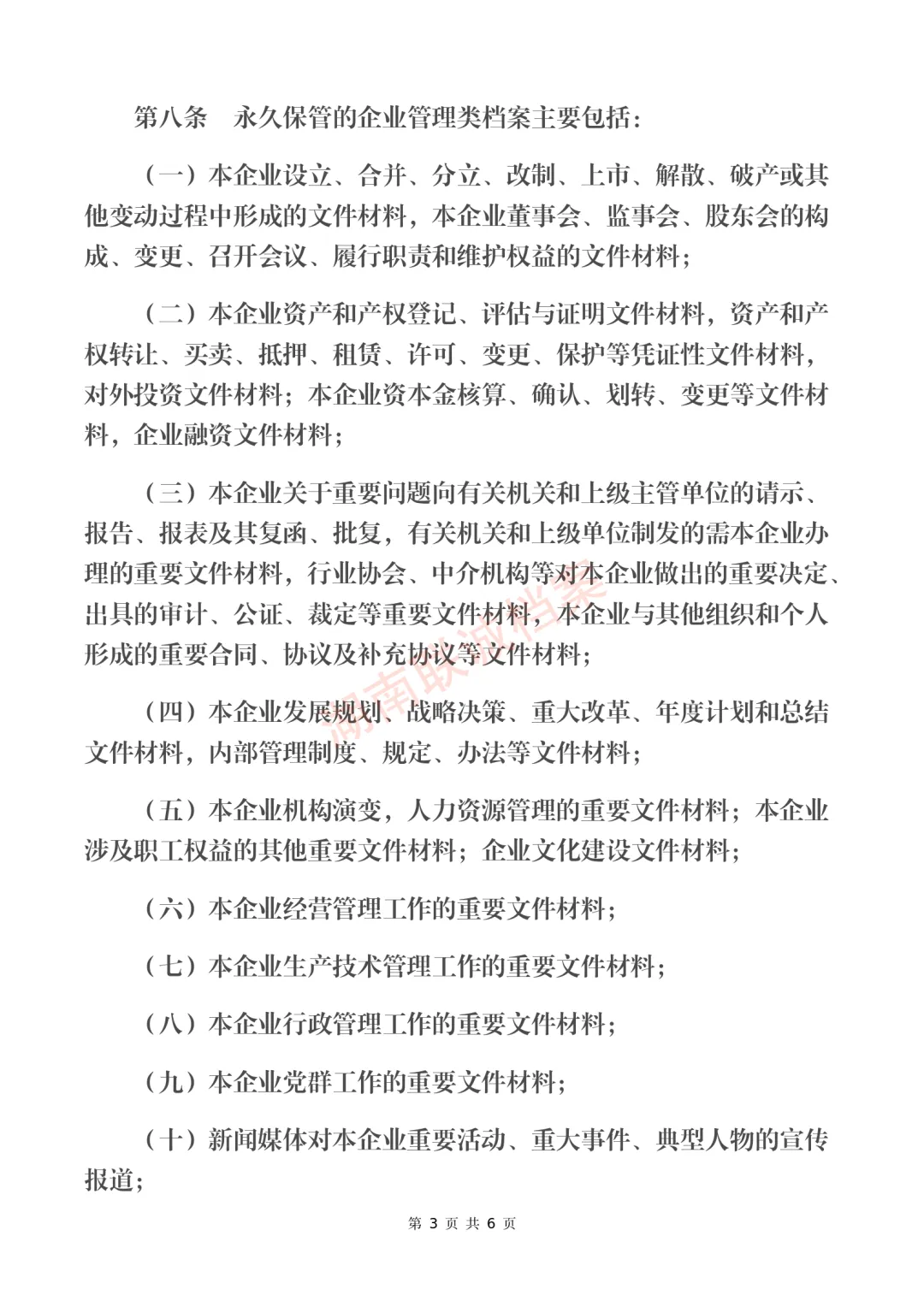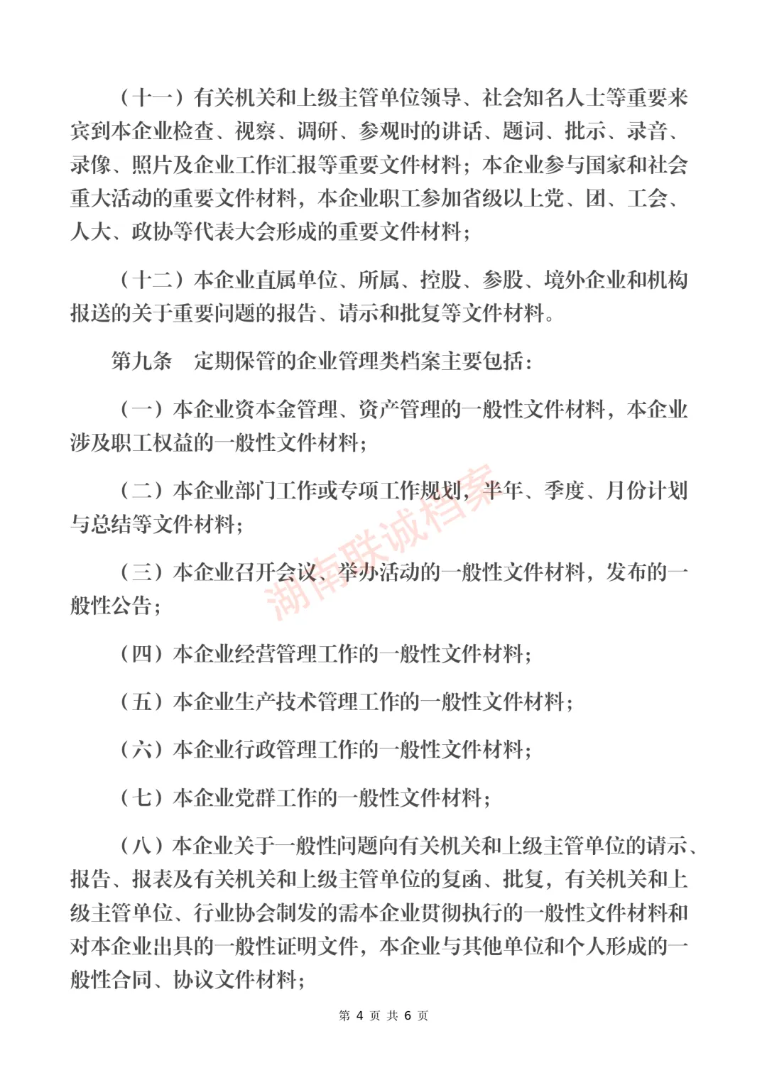 10.1 | 涉及本企业经营管理重要事项和其他重要事项的文件材料 | 永久 |