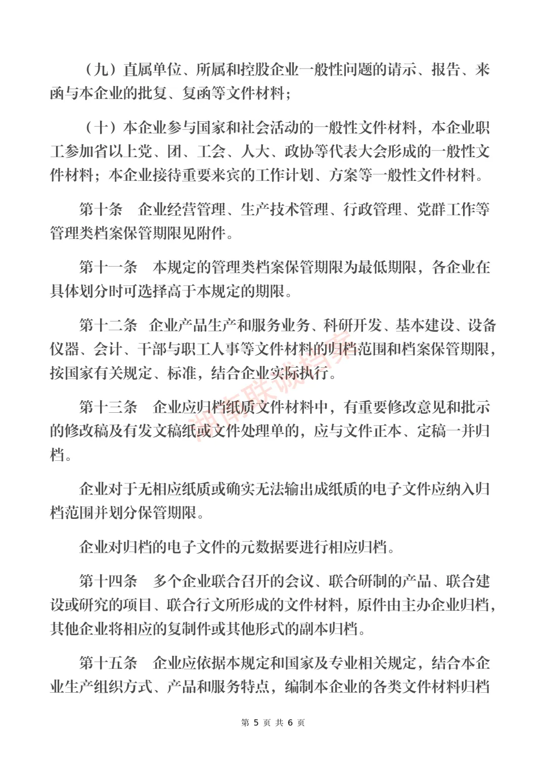 10 | 本企业收到的有关机关、上级主管单位等相关机构制发的文件材料 | |