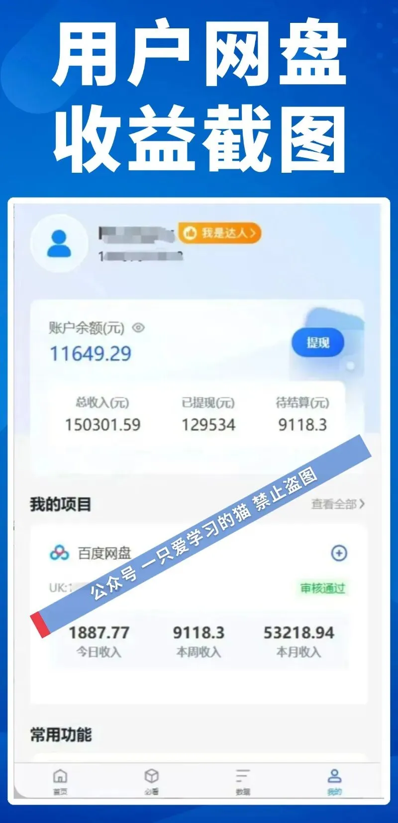 第一笔收益就是转存,只要别人保存了你的资源,那你就能获得这笔收入; 第二笔拉新,如果别人没用过该网盘,因为你的资源注册账号了,那又会有一笔收入;