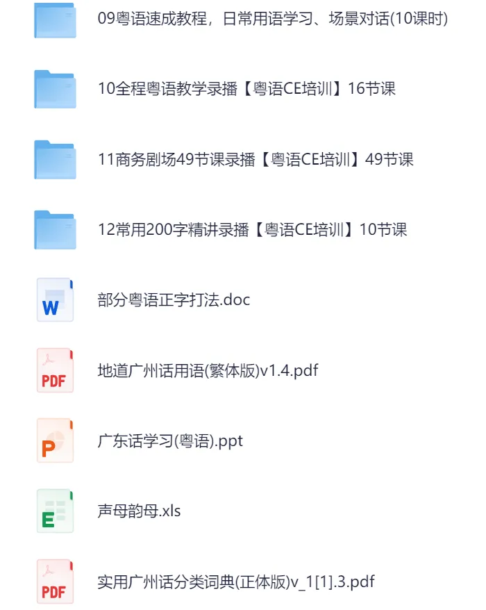 【学习】【粤语】粤语资料合集,粤语入门速成班,实用广州话分类词典,全程粤语教学录播【粤语CE培训】,学说广州话,网盘免费分享