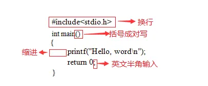 C程序就是执行主函数里的代码,也可以说这个主函数就是C语言中的唯一入口。printf()是格式输出函数,这里就记住它的功能就是在屏幕上输出指定的信息- return是函数的返回值,根据函数类型的不同,返回的值也是不同的。
