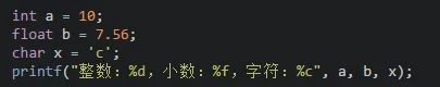 因为精度的不同又分为3种(float,double,long double):注:C语言中不存在字符串变量,字符串只能存在字符数组中,这个后面会讲。格式化输出语句