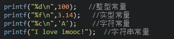 注意:格式符的个数要与变量、常量或者表达式的个数一一对应不可改变的常量