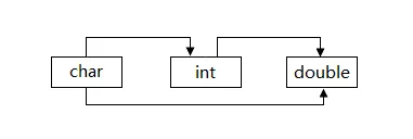 char可以转换为int,int可以转换为double,char可以转换为double。但是不可以反向。