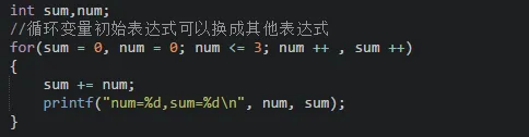 (;;)不能缺省。 - 省略“表达式1(循环变量赋初值)”,表示不对循环变量赋初始值。
