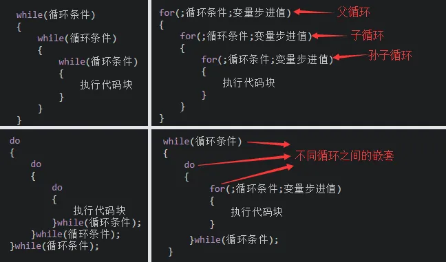 因为循环层数越多,运行时间越长,程序越复杂,所以一般用2-3层多重循环就可以了。另外不同循环之间也是可以嵌套的。