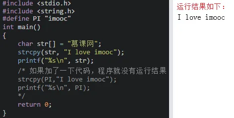 - strcpy()拷贝之后会覆盖原来字符串且不能对字符串常量进行拷贝,比如: