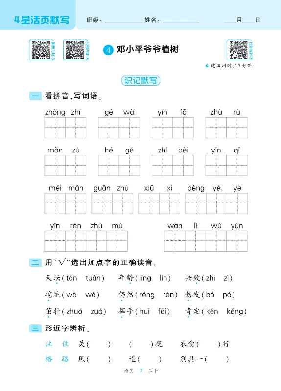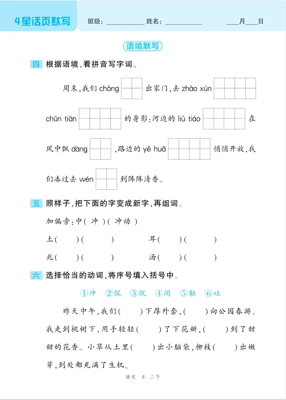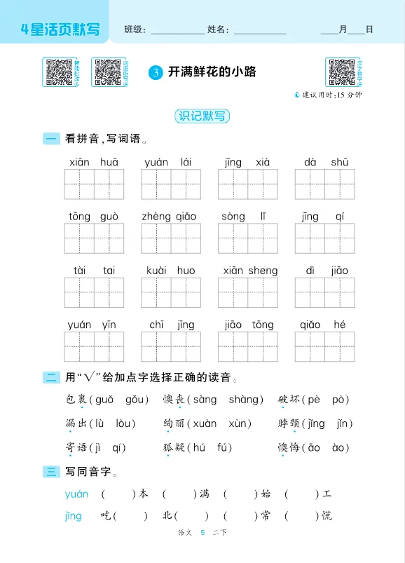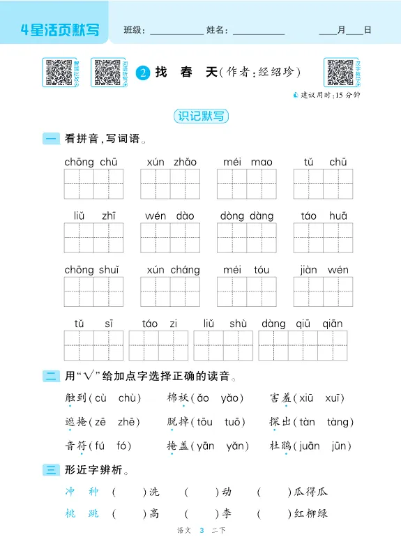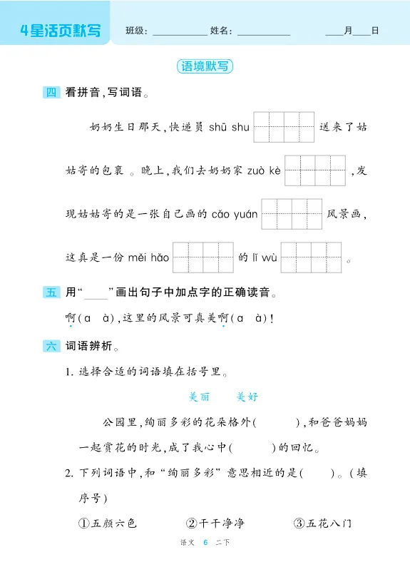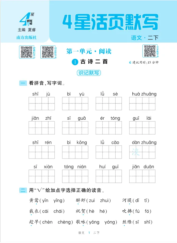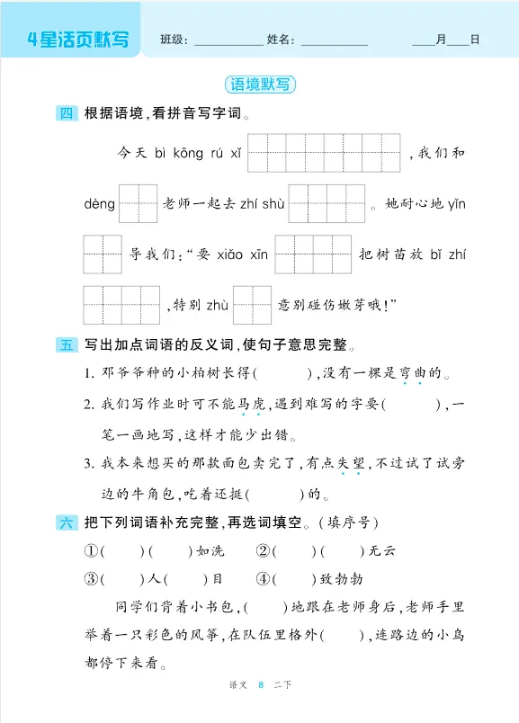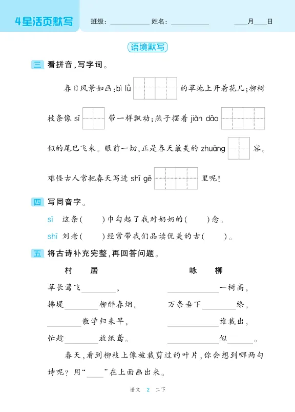 学习资料库-1-22【【26春4星活页默写语文2年级下】