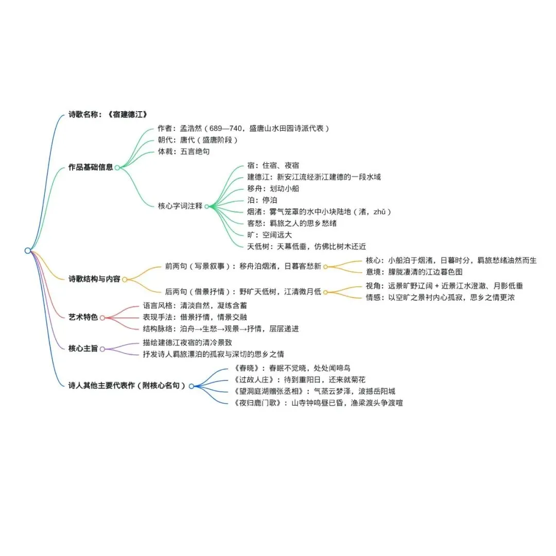《宿建德江》是唐代诗人孟浩然的经典五言绝句,以极简的笔触勾勒出羁旅夜泊的孤寂图景,尽显“清淡自然”的孟诗风格。