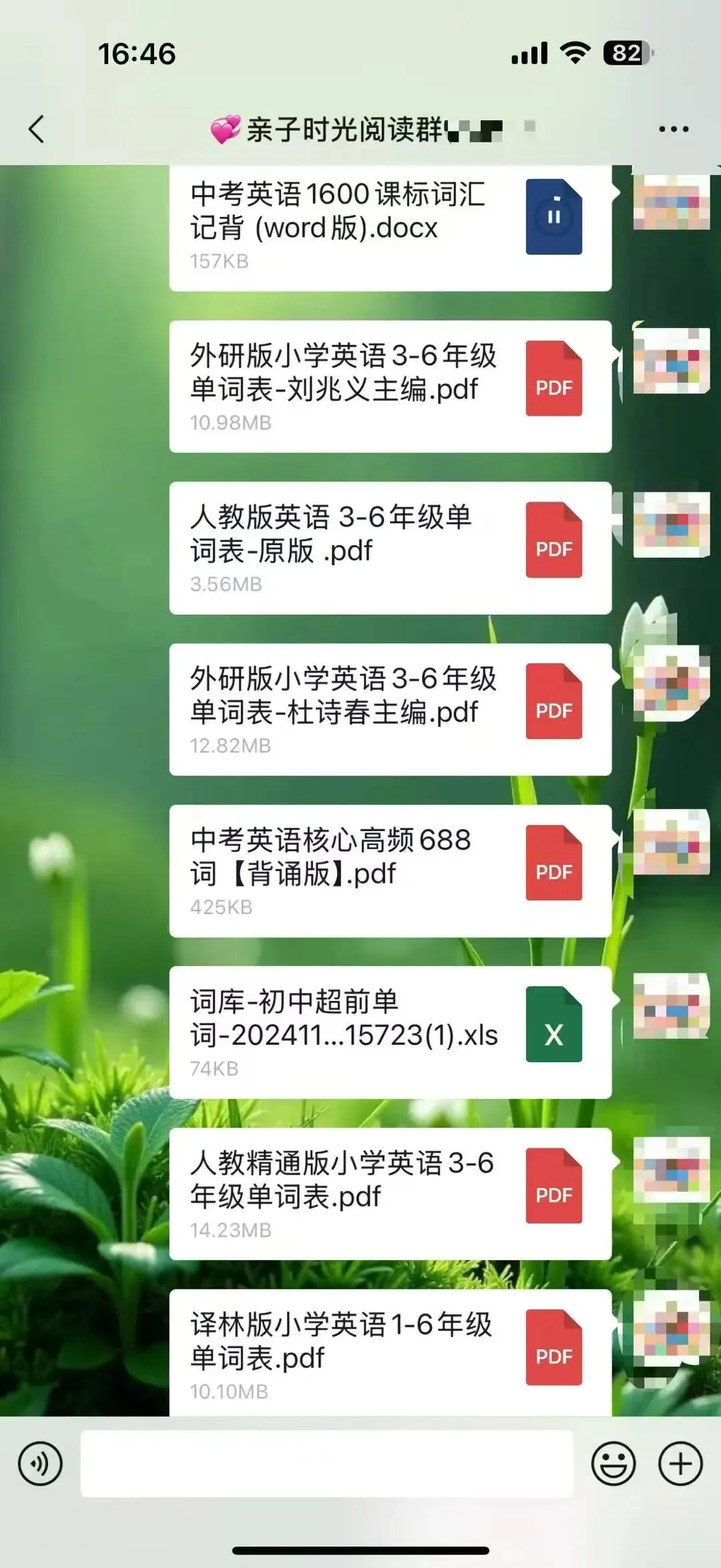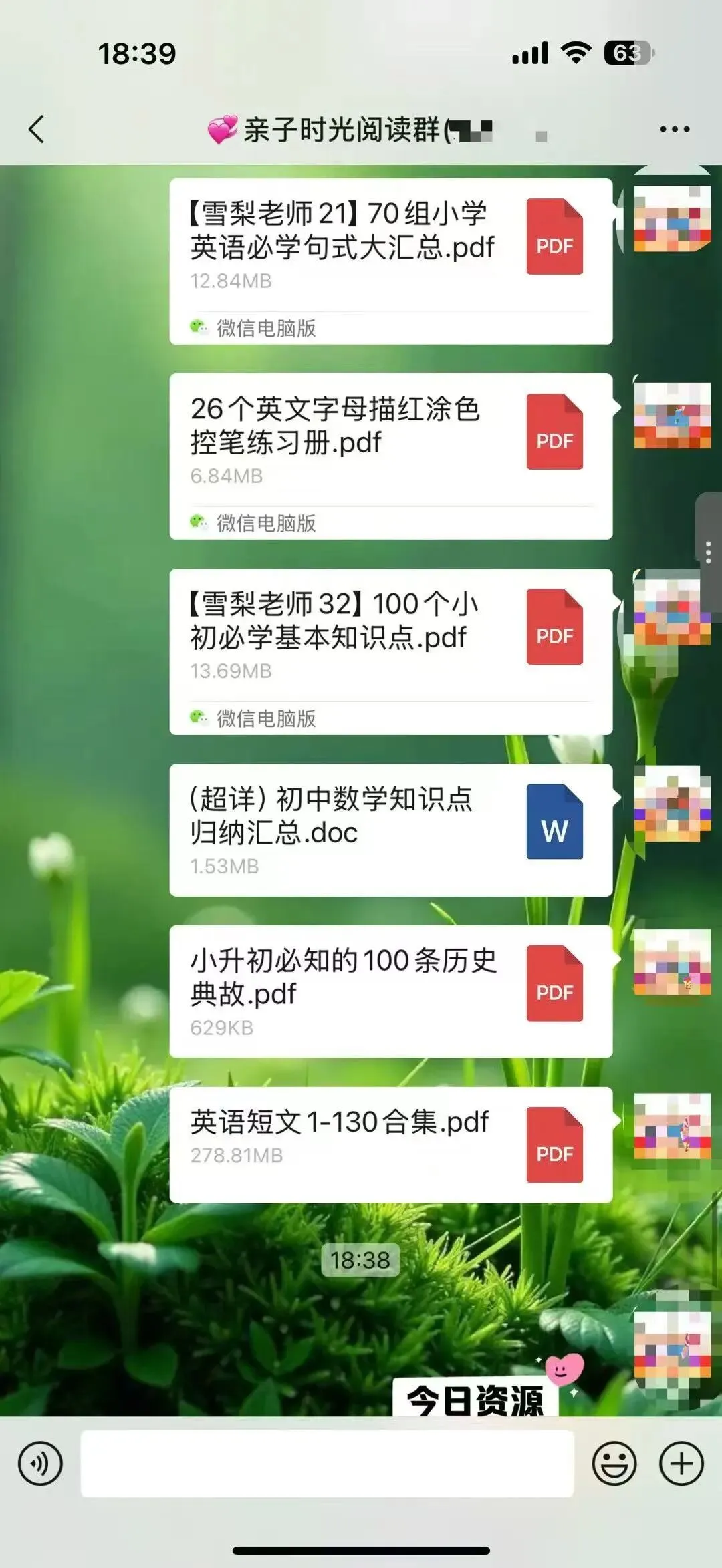 在群里每天分享学习资料,家里上幼儿园、小学和初中高中孩子的家长,可以进群一起交流养娃经验