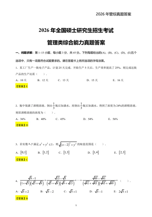 199管理类联考含真题+解析