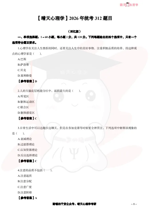312心理学真题+解析