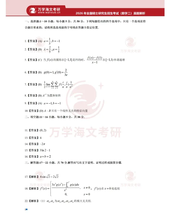 数学二真题+解析