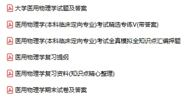 今天分享的资料是「0550-医用物理」电子版+学习笔记+知识点总结+期末考试重点+复习资料+习题集及答案+名词解释+历年真题试卷及答案+题库及答案+复习重点+思考题及参考答案+公式总结+考试重点基础题+知识总结+高清PDF可打印+免费分享!