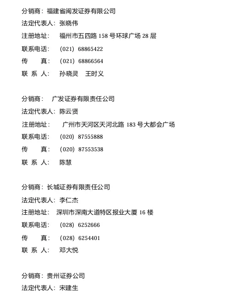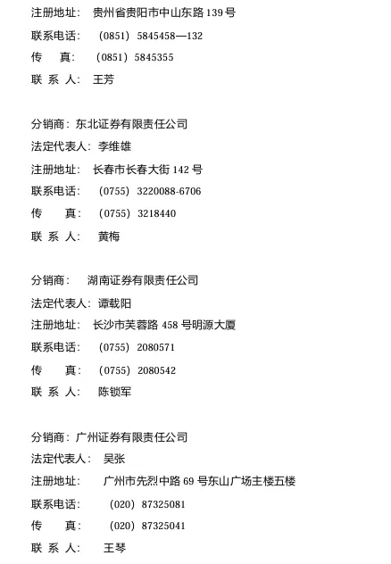 分销商(图5、图6、图7)共有8家,分别是福建省闽发证券(福州)、广发证券(广州)、长城证券(深圳)、贵州证券(贵阳)、东北证券(长春)、湖南证券(长沙)、广州证券(广州)、光大证券(上海),如此通过1+3+8的分销体系,将6500万新股分配完成。