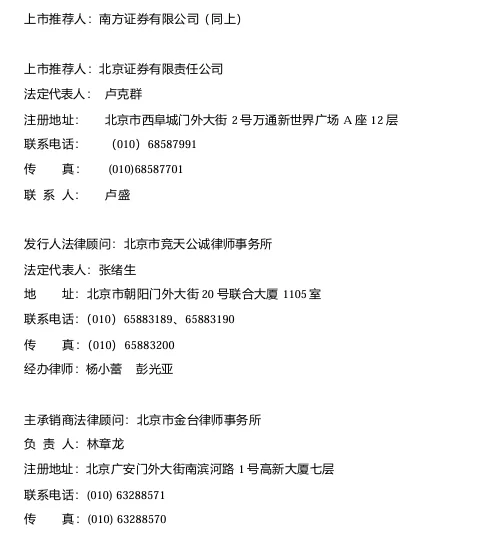 上市推荐人(图8)一般就是主承销人南方证券,发行人和主承销商法律顾问均为北京企业,方便与监管部门沟通,完美。