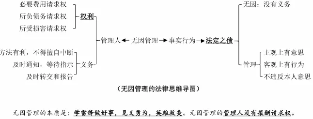无因管理是民法中的一项重要制度,其本质在于“学雷锋,做好事”。在法考中,考生需要重点掌握无因管理的概念、构成要件、法律后果以及与实践的结合点。特别是要注意无因管理中管理人无报酬请求权的特点,以及无因管理与民事行为能力的关系。通过理解和运用这些知识点,考生可以更好地应对法考中的相关题目。